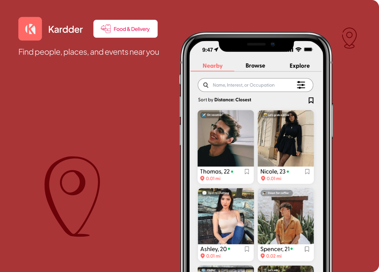 friends, workout buddies, or love, Kardder helps you filter and connect with nearby members.